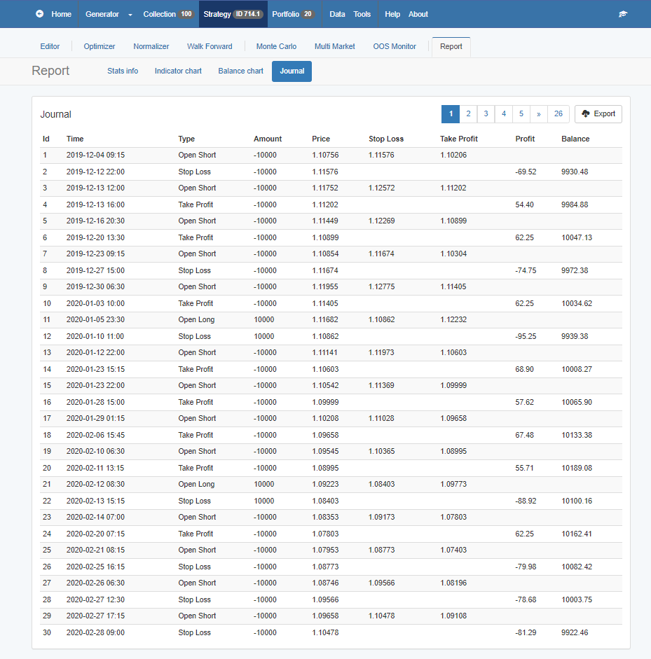 The balance chart in EA Studio, similar to Metatrader 5, is presented in a differently sized window. This variation in size enhances clarity, making it easier for traders to analyze the performance of their strategy over time. The balance chart effectively illustrates the strategy’s profitability, providing a visual representation of gains and losses.