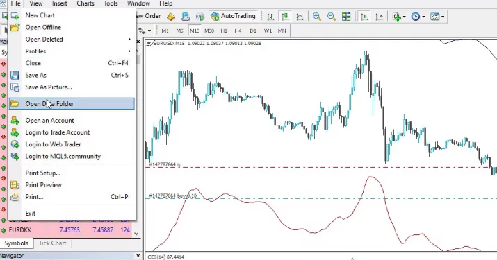 Now we will walk you through placing an Expert Advisor on MetaTrader for backtesting. The first step in this process is to navigate to the ‘File’ menu and select ‘Open Data Folder’.