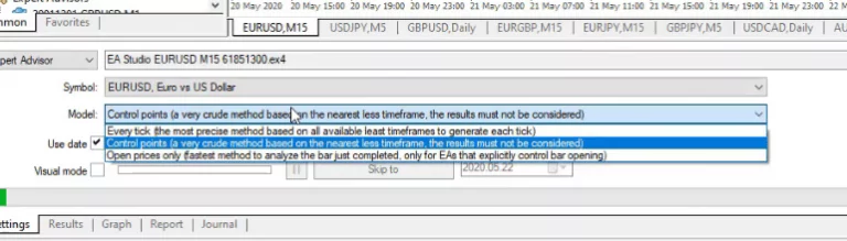 To perform strategy backtesting in MetaTrader 5, the process is straightforward. You need to set up the Expert, Symbol, Timeframe, and Modeling, with ‘Open prices only’ being a common choice for EA Studio strategies. Starting the backtest will reveal if the strategy was profitable up to the current moment. However, it’s important to remember that past performance in backtesting doesn’t guarantee future profitability.