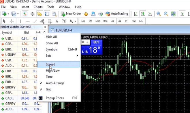 And then on the right side, you have the period, so it’s on H1 and then you have the spread. You can enter any spread or you can leave it to current. Now, one of the other reasons that I have decided to show you on this platform is because here, my spread is a little bit bigger with this broker.