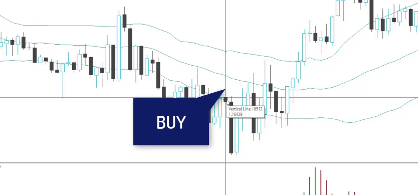 Let’s take an example. I will just put 1 vertical line. We have the cross on the opening of the next bar. We wait for the next bar to open. When the next one opens, we have the confirmation to sell it.