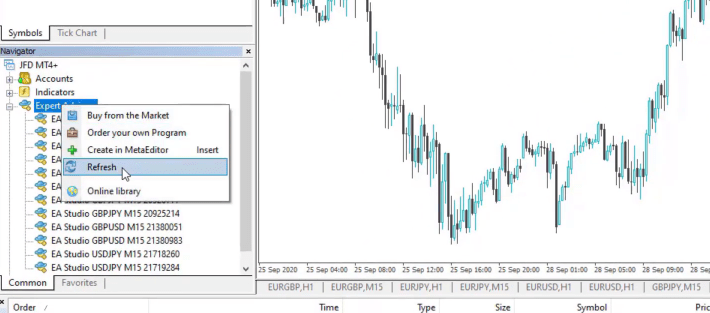 So when we do backtesting Forex EAs, it’s good to have as much data as possible. And what you need to do in order to perform the backtest, is just right click and then go to Expert Advisors and then go to MT4 Strategy Tester or you can press F6 as well. You see a small window comes up where we have the symbol and we have the Expert Advisor. We don’t need to change anything right here: