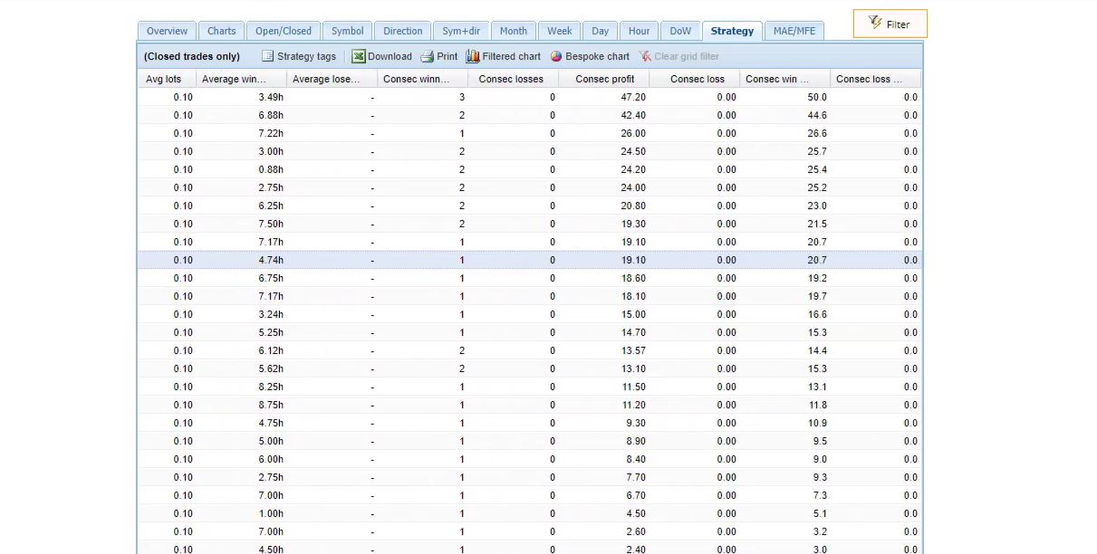 What I’m focusing on is Strategy. When I click on Strategy, I see all the strategies that opened and closed trades up to this moment.