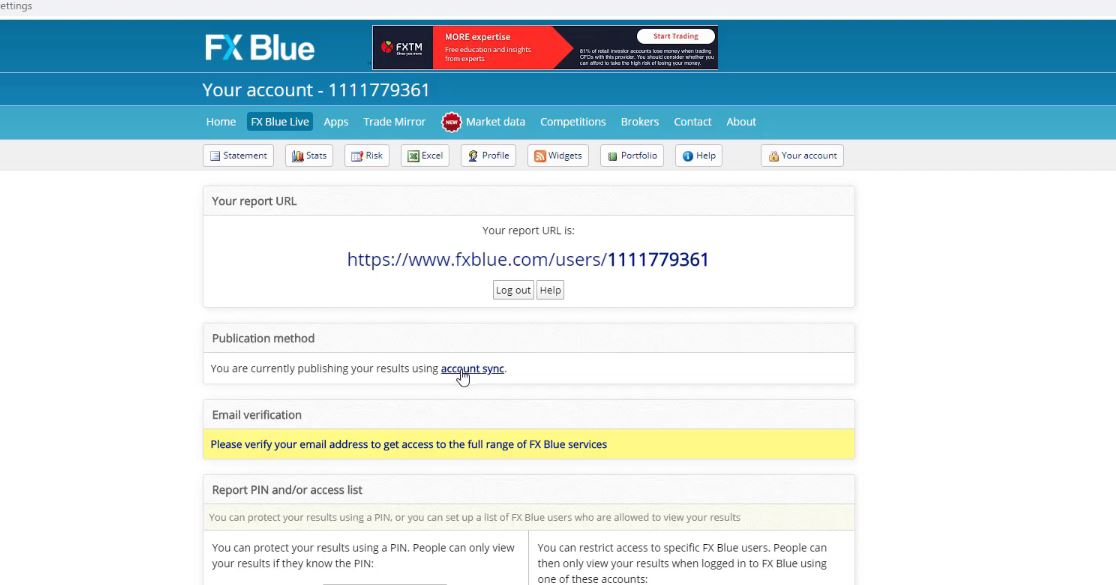 So I will connect my Demo account to FX Blue and if you don’t have any of my other courses, you will see how it is possible to follow the results in the account very easily with such a statistical website.