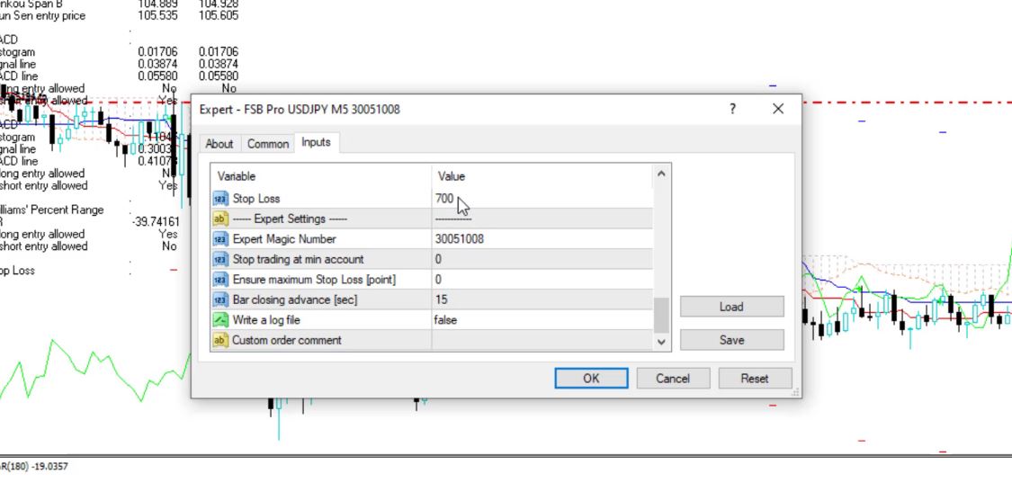 And if you go through the Expert Advisors when you are learning them and doing your fx training, you will see that each Expert Advisor has a Stop Loss lower than 100 pips. In this case, for the USDJPY, for example, we have 70 pips.