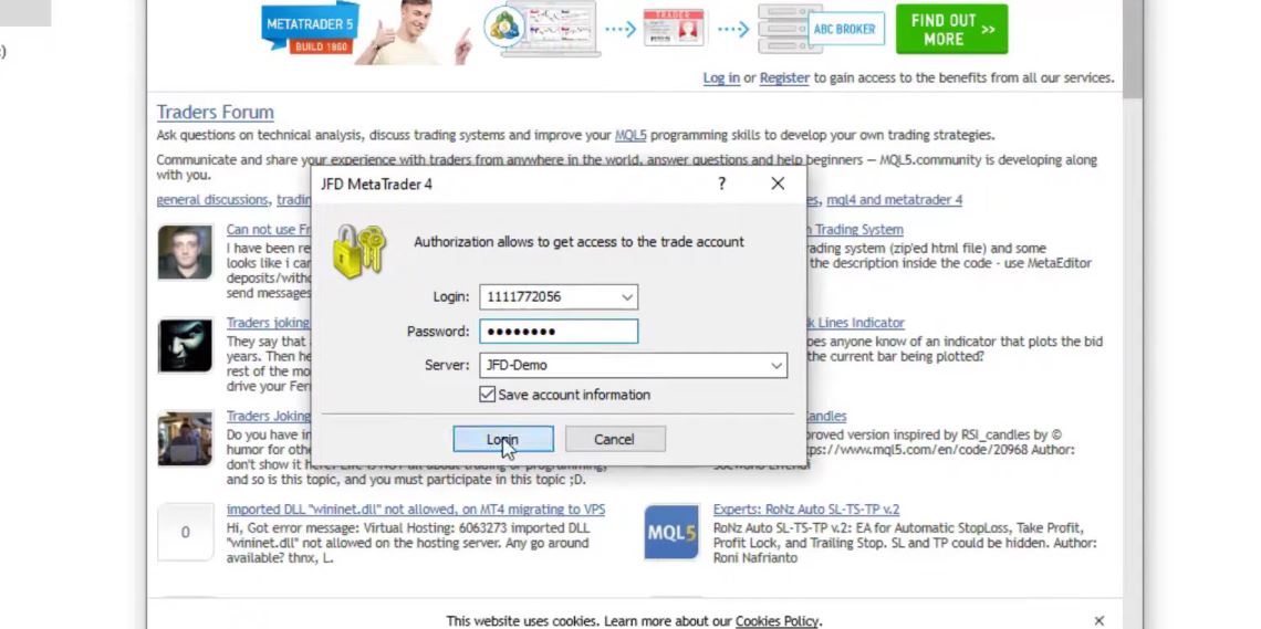 Meta Trader 4 installation.