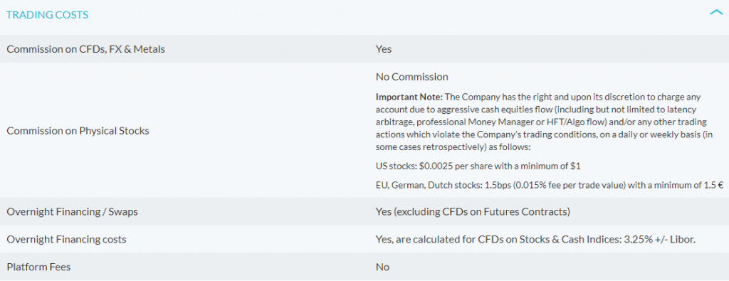 They say that they use inner-banking core spreads starting at 0 pips for Forex trading and that there are not minimum spreads. Tests done on their demo account option shows that the spreads generally start at 1 pip, which is considered to be competitive.