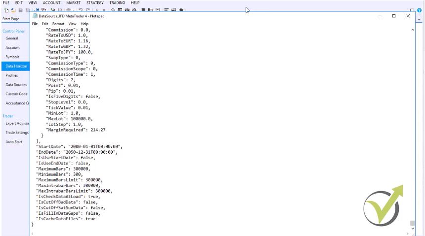 The generator works on the historical data that we have predefined for the asset. In this case, I have EURUSD, M15, for 20 000 bars. If you click on the control panel and you go to data horizon, you can increase the maximum data bars, and the maximum setting is 50 000.