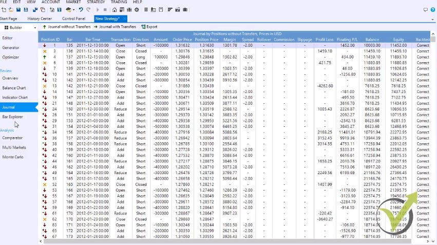 That is something missing with all the other Builders. Basically, when you create a strategy with Forex Strategy Builder Pro, no matter manually or automatically, you can see from which point to which point the trade is open. And that gives you a higher chance to improve your strategy.