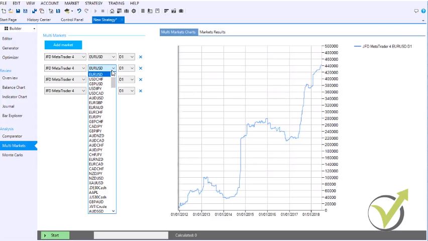 The Multi market in Forex strategy builder pro allows us to add a couple of markets: