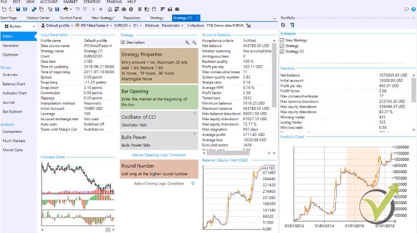 FSB Pro stands for Forex strategy builder professional. This is one of the most camels where is for algorithmic trading nowadays and it is a little bit slower than EA studio because you need to install it on your computer. However, the FSB pro provides more opportunities for the Trader because it allows trading using longer time frames.