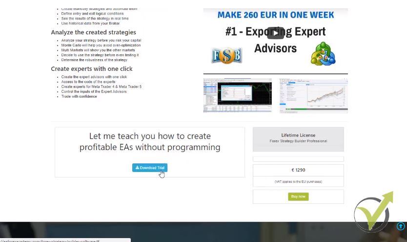 The best way to test the value of the Forex Strategy Builder Professional is to prove it. There are the 14 days free trial that you can take advantage of if you go to our website www.eaforexacademy.comand on the top right corner you will see