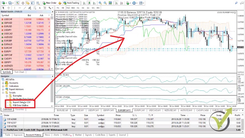 You will need to open your Meta Trader and place it inside the FSB data source. And export data to CSV files, which you can find on the official website of the software company, or you can drop us an e-mail at [email protected]. And we will send you the scripts.
