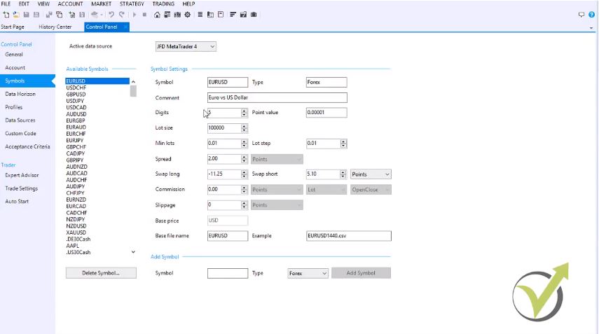 This way, I have exported the historical data for each symbol that I would be trading on, and this is very important before you create any strategies or Expert Advisors to work on the historical data from your broker.