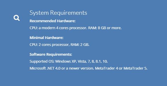 Software Requirements: Supported OS: Windows XP, Vista, 7, 8, 8.1, 10. Microsoft .NET 4.0 or a newer version. MetaTrader 4 or MetaTrader 5.